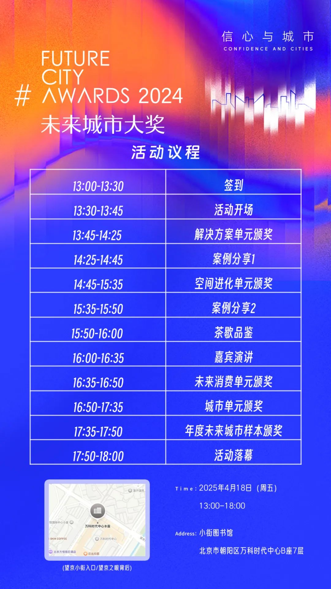 4月18日,“2024年未来城市奖颁奖典礼”将在北京市朝阳区万科时代中心街道图书馆举行,表彰获奖项目。同时,它也希望凝聚更多的行业智慧去探索和时间,让城市和未来更加美好。