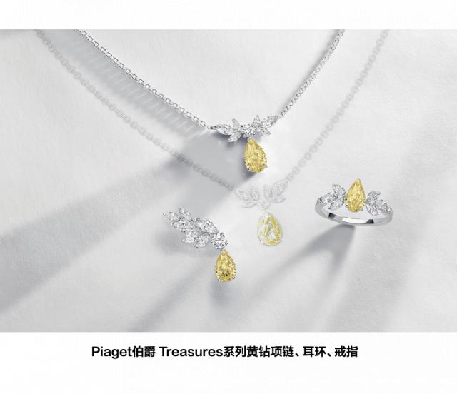 为了保证每一颗宝石都有明亮而强烈的色彩,伯爵对黄钻的选择有很高的标准。因其 Treasures 以珠宝系列为例,这一系列作品的中心装饰着一颗梨形黄钻,与马眼形切割的钻石形成对比,比如 Treasures 颈链上那颗 1.72 克拉的梨形黄钻,不仅展现了黄钻的明亮动人,更仿佛捕捉到了阳光的活力。这一设计不仅突出了黄钻的亮色,而且增加了整体的视觉冲击力,展现了自然美。