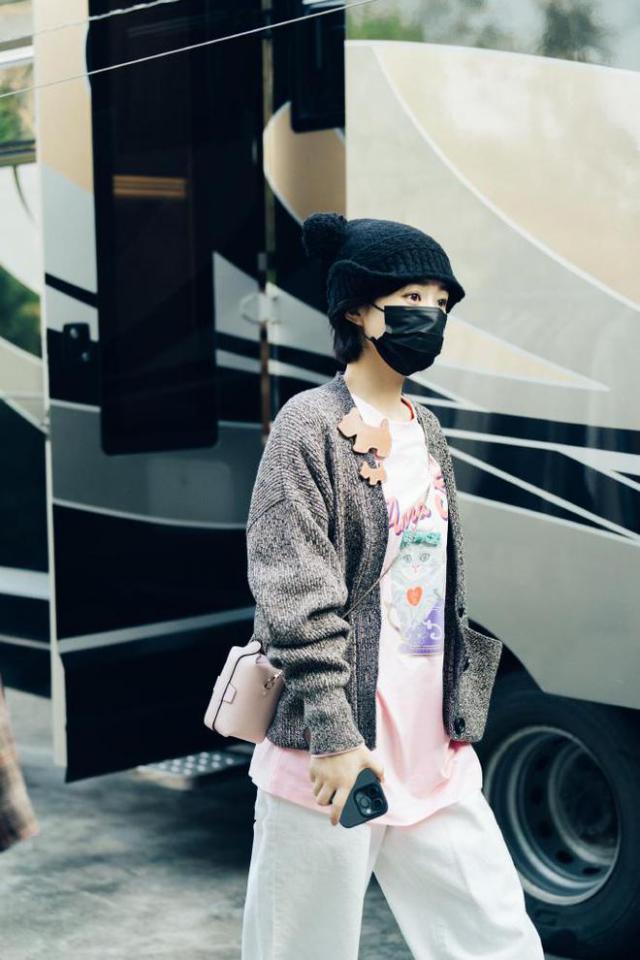 照片中赵丽颖身穿粉红色的衣服。 T t恤,搭配白色宽松休闲裤,因为已经过了立冬,所以天气越来越冷了。她还穿上了针织外套,头上戴着毛茸茸的帽子。她穿的时候还是很时尚的,完美的展现了她甜美可爱的气质。她不得不感叹离婚后的颖宝真的越来越迷人了。