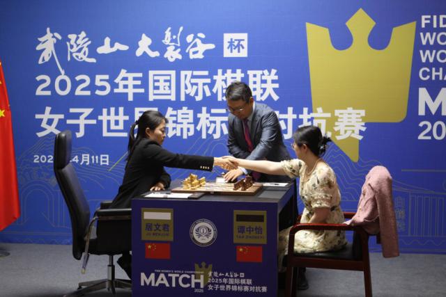 国象女子世界冠军赛共设国象女子世界冠军 12 轮慢棋,率先获得 6.5 分者获胜。凭借之前的四连胜,居文君在八轮战罢之后已经以四连胜告终。 6 比 2 遥遥领先,只需一盘和棋就可以夺冠。在第九轮比赛中,执白先行的居文君再一次以王兵开始,谭中怡应该以西西里防守。准备好的居文君率先改变了自己的阵容,成功获得了一个理想的开始。“因为只需要和棋,我选择了一个相对稳定的变化作为白棋”。居文君在赛场上交换了大量的子力。虽然谭中怡试图复杂化局势,但他没有找到一个好的方法。比赛进入了平均车兵的残局,最后在第一名。 38 这一轮形成了一个重复的局面,以平手结束。