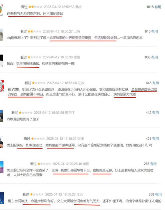 为这部剧打出一星和二星的观众,“差评”理由出奇的一致,高赞全集中在: