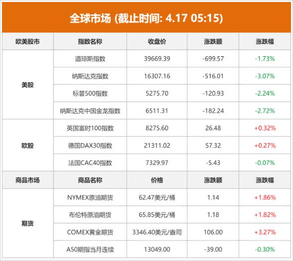 【CNMO 技术新闻:当地时间 4 月 16 日本,美股三大指数大幅下跌,引起市场高度关注。道琼斯工业平均指数下跌。 699.57 点,收在 39669.39 点,跌幅为 1.73%;标准普尔 500 股票指数下跌 120.93 点,收在 5275.70 点,跌幅为 2.24%;纳斯达克综合指数下跌。 516.01 点,收在 16307.16 点,跌幅高达 3.07%。这次下跌的普遍影响,尤其是大型科技股集体下跌,给市场带来了巨大的影响。