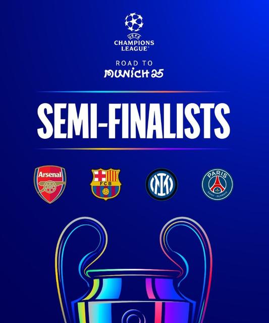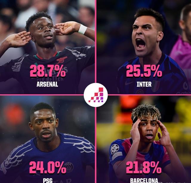 欧冠4强诞生 获得冠军的最新概率和赔率更新:阿森纳第一 巴萨竟排第4