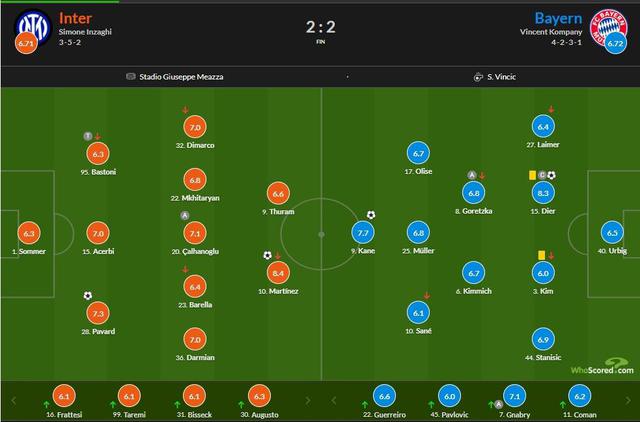 第 58 几分钟,国米角球给出,拜仁救场不干净,劳塔罗门口近在咫尺,帮助国米追上比分。 1 平。