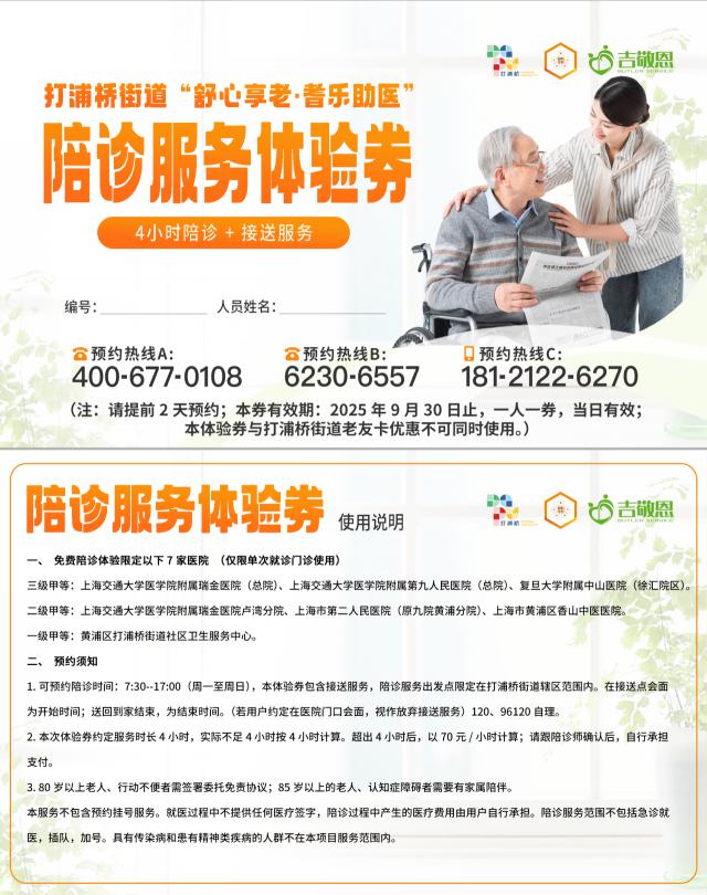 据报道,打浦桥街道将继续优化“舒心享老” · 乐乐助医“陪诊服务体验,严格控制陪诊服务质量,真正为更多有需要的老年人及其家属提供安心服务,让专业陪诊人员为老年人保驾护航,“医疗”之路相伴!今年,黄浦区还将扩大全区共享陪诊服务覆盖面,惠及更多群体。