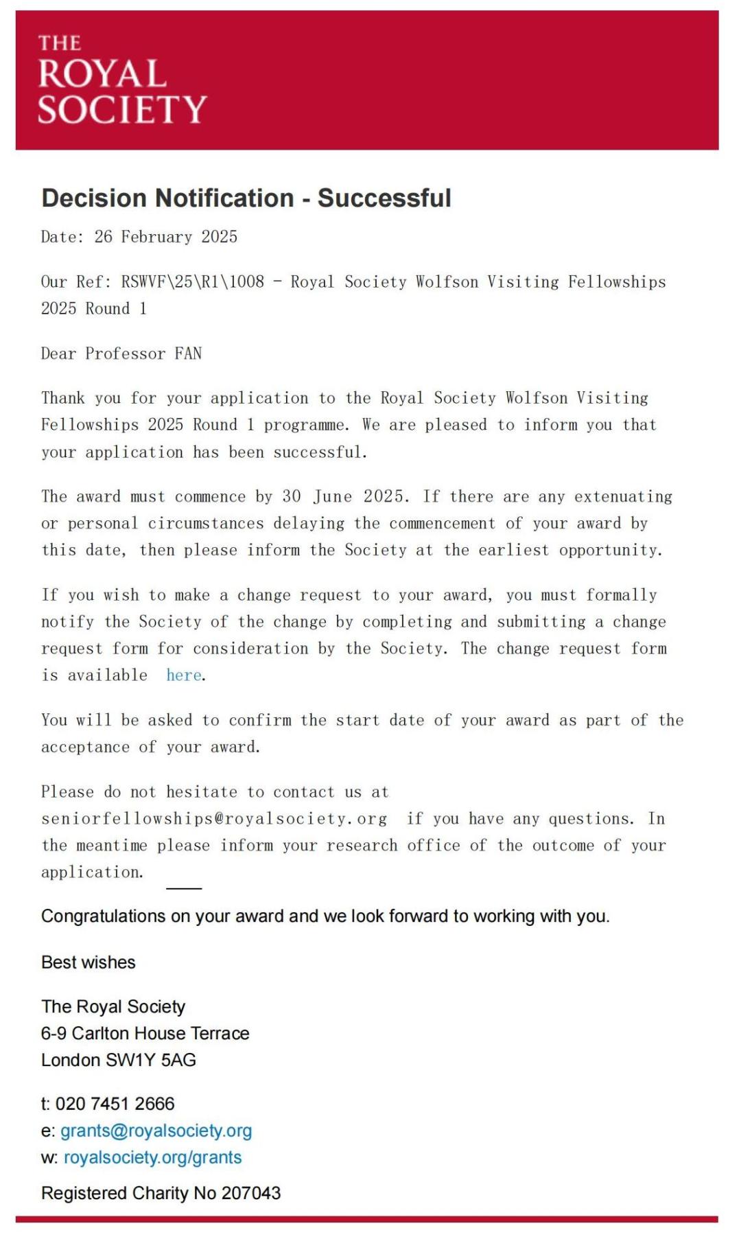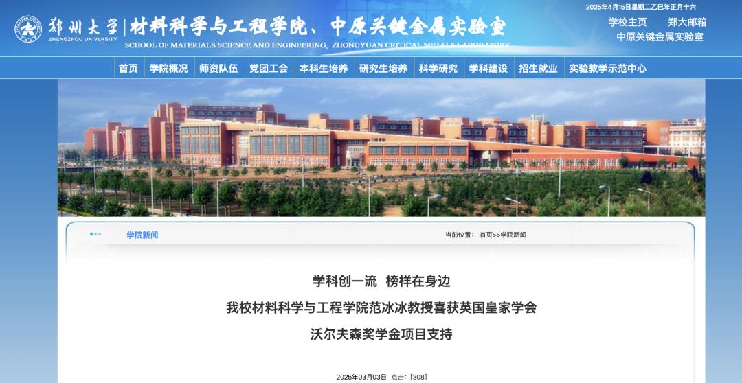 据学院官网消息,英国皇家学会沃尔夫森奖学金是英国皇家学会开设的重要科研补贴计划。该计划每年有不超过15名全球支持者,范冰冰教授获得13.12万英镑的补贴(约126万人民币)。