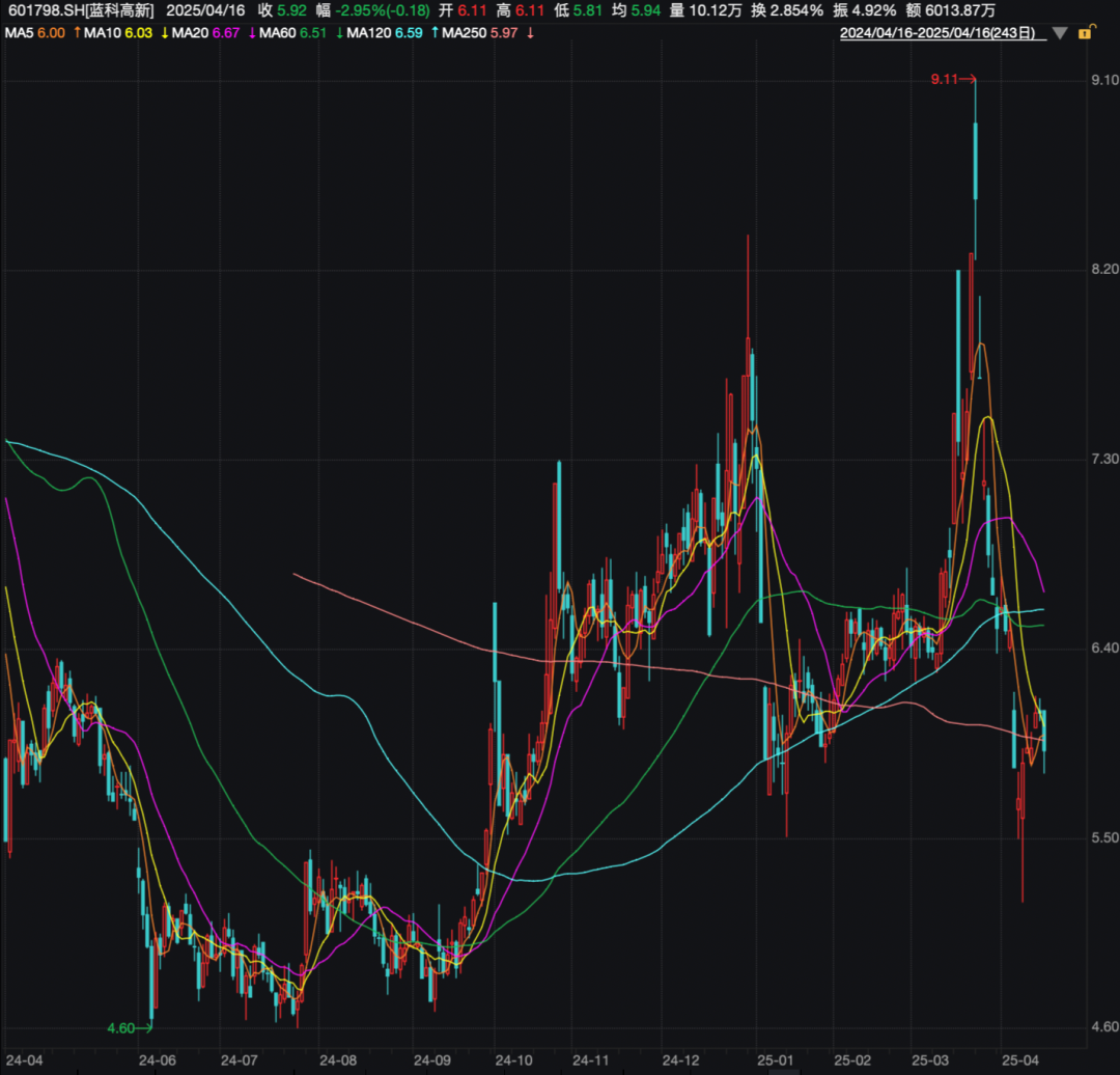从股价走势来看,蓝科高新今年3月迎来了一波大幅上涨,一度涨到9.11元/股,但此后股价调整非常强劲,最低跌至5.20元/股。近日,该股股价有所复苏。截至4月16日,已收于5.92元/股,最新总市值为21亿元。蓝科高新今年以来股价下跌近21%。