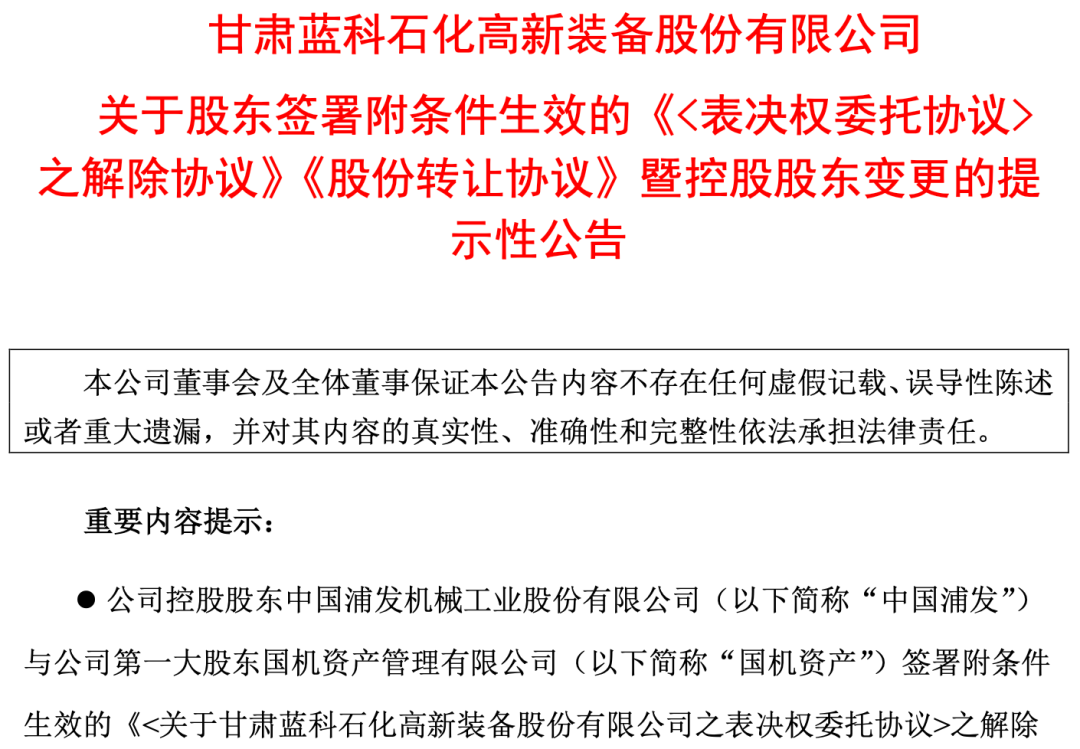 四月十六日晚,蓝科高新首先披露了一份关于控股股东变更的提示公告。