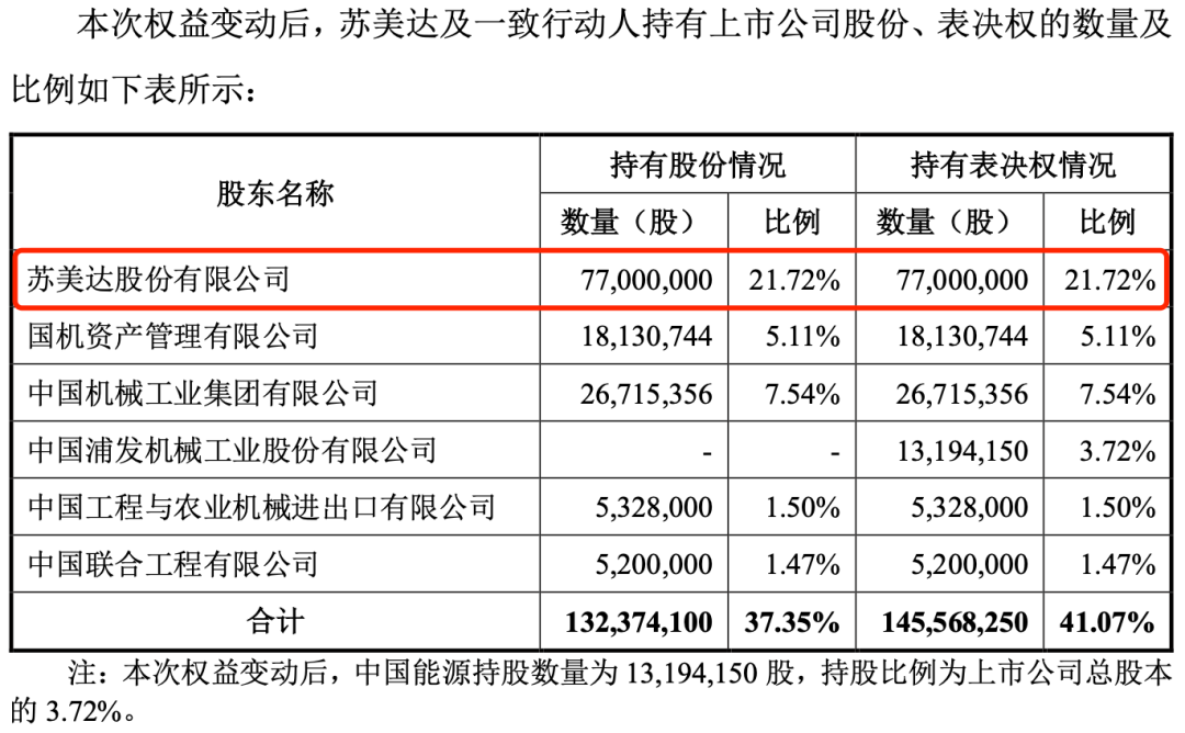 根据公告,中国浦东发展、中国机械资产和苏美达都是中国机械工业集团有限公司(以下简称中国机械集团)的控股子公司。本次表决权委托消除和协议转让后,苏美达将直接持有公司7700万股,约占公司总股本的21.72%,将成为公司的控股股东,但不会改变公司的实际控制人。中国机械集团仍然是公司的实际控制人。