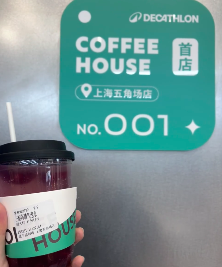 “喝什么不重要。当你用30杯咖啡角的中产饮料代替手里购物买的蜜雪冰城时,迪卡侬已经赢了。”