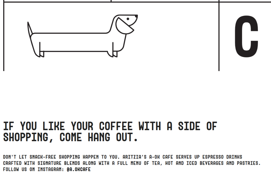 所以卖给你一杯咖啡,让你买衣服,把店铺当成和朋友聊天的地方,就成了时尚品牌的自救手段之一。众所周知,咖啡因带来的兴奋可以让你精力充沛地接受消费主义的刺激。服装品牌咖啡店A-OK 这一点在Cafe平台上得到了明确的解释:“不要让没有饮料和零食的购物发生在你身上。”
