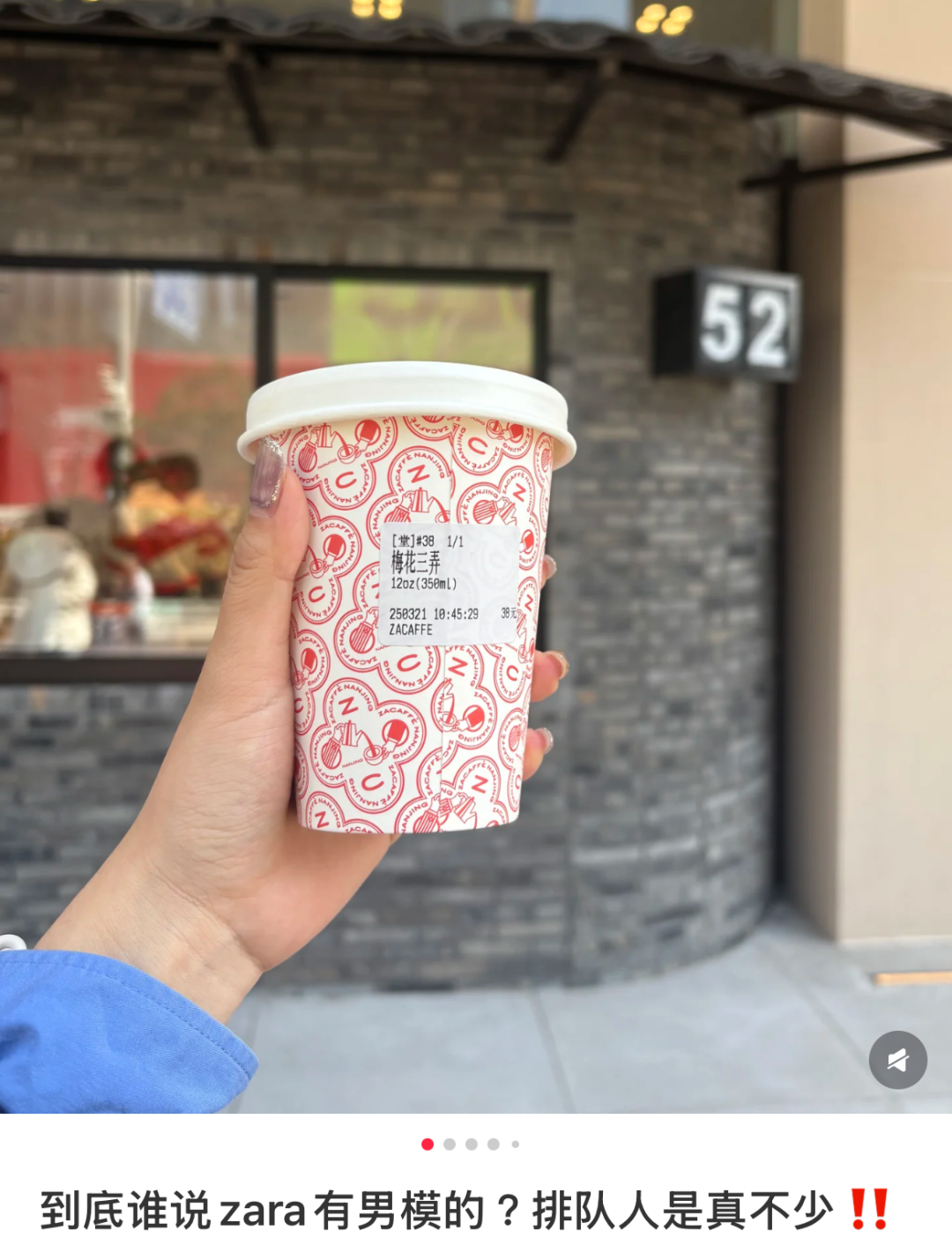 Zara亲自上阵做副业,在店一楼开了一个咖啡角,卖只能在“经理店”喝的精品咖啡,而不是和Manner一起换包装。