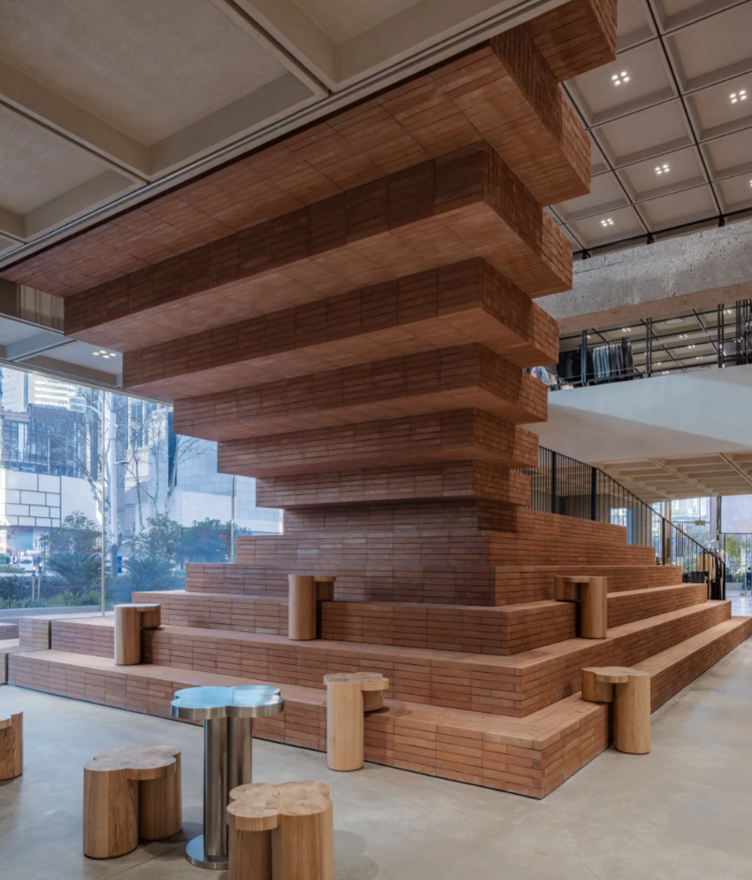 咖啡店位于Zara旗舰店2500平方米的一楼。咖啡生产区与南京特色相呼应,做成古色古香的灰瓦房。在窗户旁边,如果你不想进入Zara,你可以买一杯咖啡带走。店面够大,Zara开始无所顾忌:咖啡窗口旁边设计了一个楼梯休息区,可以直接到达天花板。当你穿着新买的2025款车型坐在那里,一张生活街拍照就诞生了。