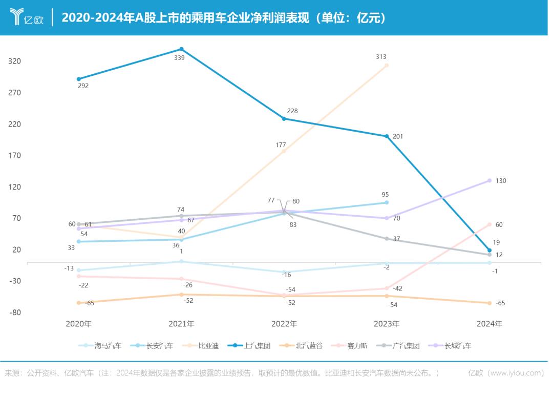 就a股上市的乘用车公司而言,上汽集团近年来净利润下滑尤为明显。