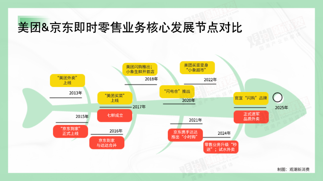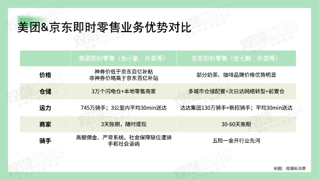另一方面,JD.COM和美团,一个从远场电商走向近场零售,另一个从餐饮走向家,延伸到家,在“即时零售”的战场上相遇是必然的。