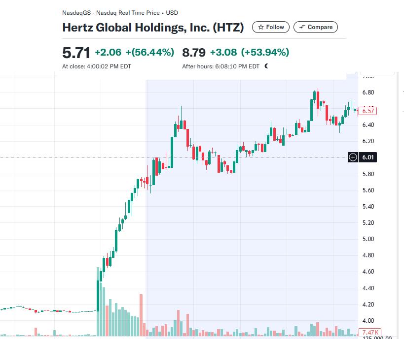 造成 HTZ盘中一度暴涨50%。