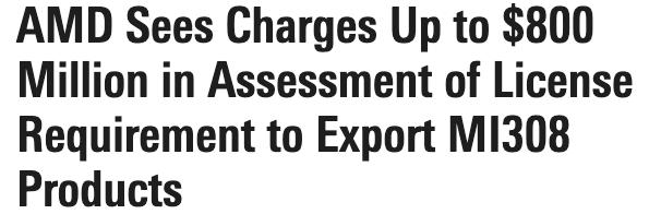 与此同时,AMD也披露了类似的消息。该公司表示,美国的出口管制政策也适用于MI308系列产品,预计AMD最多将面临8亿美元的额外费用。这再次暴露了半导体行业在全球政治和经济环境下面临的严峻考验。