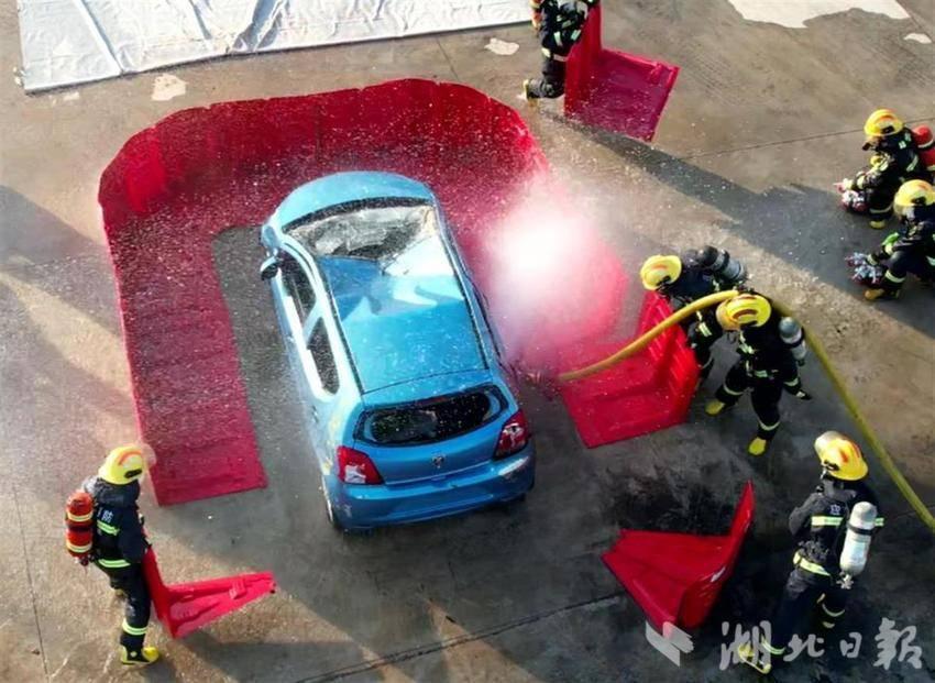 面对一辆起火的新能源汽车,几名消防队员首先拿出两三管高压水枪,导出。结果,他们没有受到任何伤害。。。除了火势下降,车底的火焰还在燃烧。