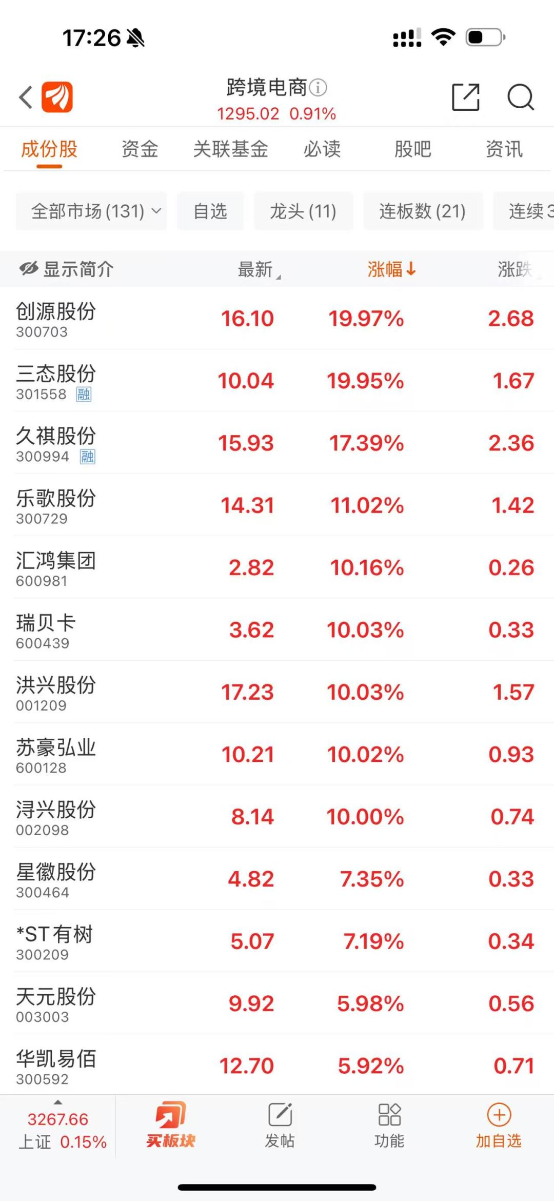 或者受此影响,“敦煌。com”概念股热议,跨境电商板块掀起涨停潮。截至收盘,创源股份和三态股份已获得20CM涨停、瑞贝卡、苏豪弘业等多只股票涨停。