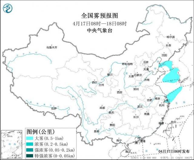 4 月 17 日 6 当时,中央气象台发布了大风蓝色预警,大雾黄色预警,局部阵风可以到达。 9~10 等级,部分地区可见度不足。 1 浓雾公里。