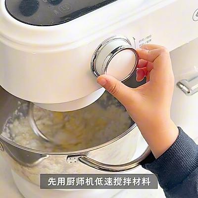1、首先,低速混合和搅拌除黄油和酵母以外的所有材料 1 档 2 分钟转 3 档 3 分分钟(混合材料)