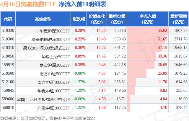 四月十六日,宽基指数ETF净流入270.33亿元