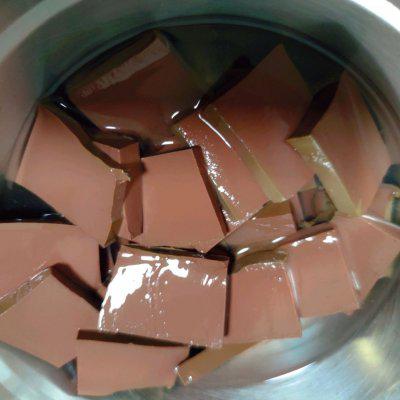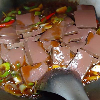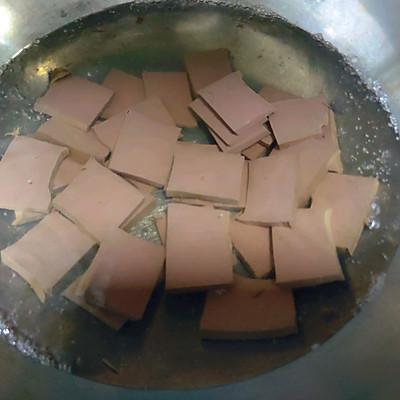 4、将米酒和鸭血放入锅中,焯水捞出备用。