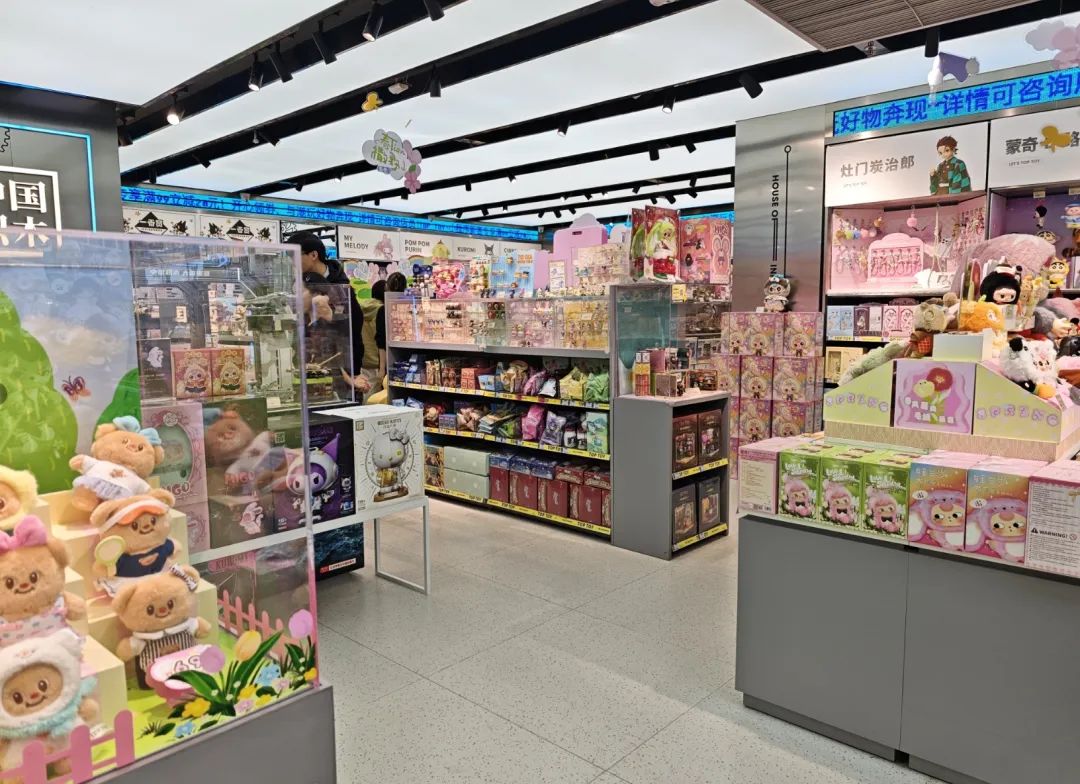 据张先生介绍(化名),他的店是国内比较大的连锁玩具品牌。除了自己的产品,还有其他快速消费品牌的产品,大部分主要是IP周边,周边类型也很丰富,从装饰到模型,以及益智玩具和娃娃,可以满足不同年龄段客户的需求。