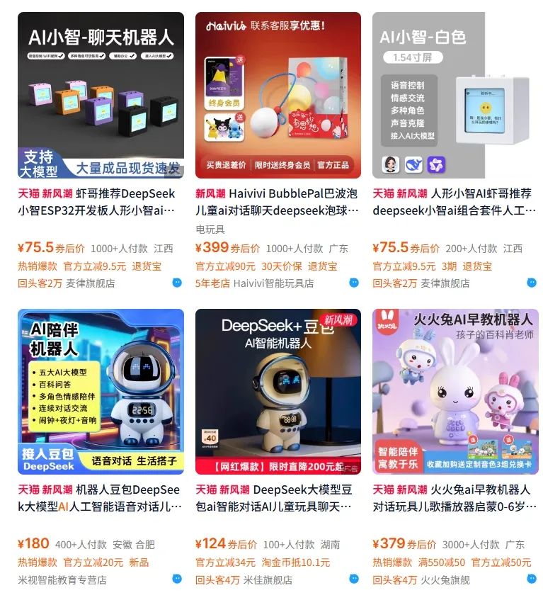 首先,生产AI玩具的厂商相当多,包括以自有品牌为核心的厂商,以及致力于代工的厂商。他们中的许多人在DeepSeek走红后进入市场。所以现阶段成熟的产品并不多,大部分厂商还在摸索前进。