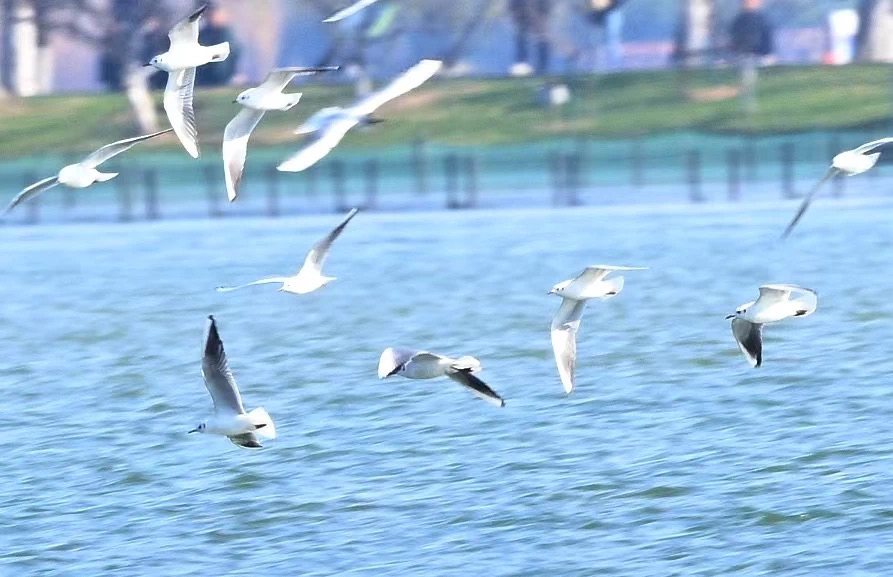 脸和嘴都是黑色的,好像戴着“黑色面具”,有时靠近水面,有时展翅在空中飞翔,“跳舞”轻盈灵动。3月17日,鸟友“云岭人”在玄武湖观鸟时,拍到成群结队的黑嘴鸥在湖面上飞翔。“这是我第一次看到黑嘴鸥!”他立即在“鸟友”中高兴起来。