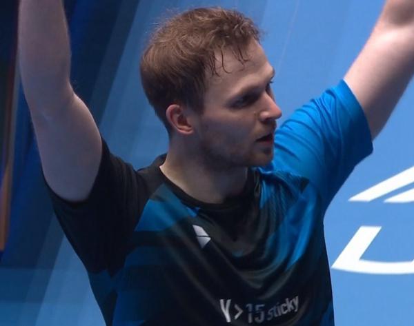 决胜局,竞争惨烈,一路紧咬比分,多次平分,奥恰洛夫。 9-10、10-11 两次救援赛点,杜达也是如此 11-12、12-13 杜达最后两次拯救赛点。 15-13 险胜,总局分 4-3 淘汰奥恰洛夫晋升男单 8 强。