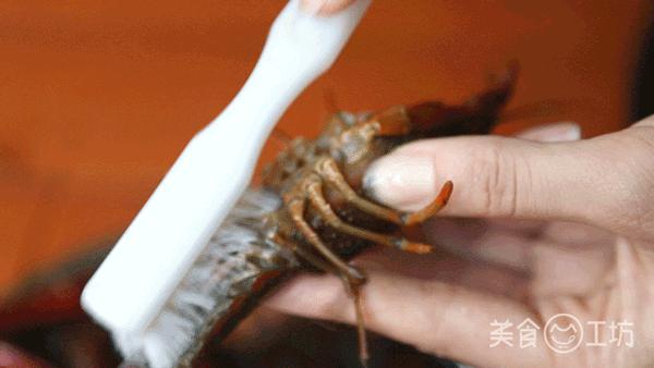 1. 用刷子清洁龙虾背部首尾相连的区域。