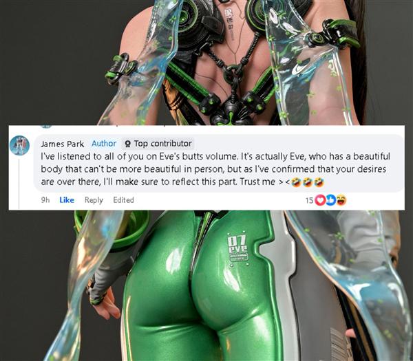 最后,对剑星娃娃模型负责 JND 在回复评论时,工作室负责人决定根据热心网友的意见进行调整。 Eve 臀围,尽管他个人感觉模型的身材已经很好了: