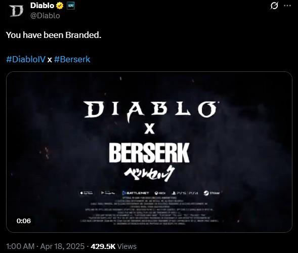 《暗黑破坏神4》与《剑风传奇》联动。