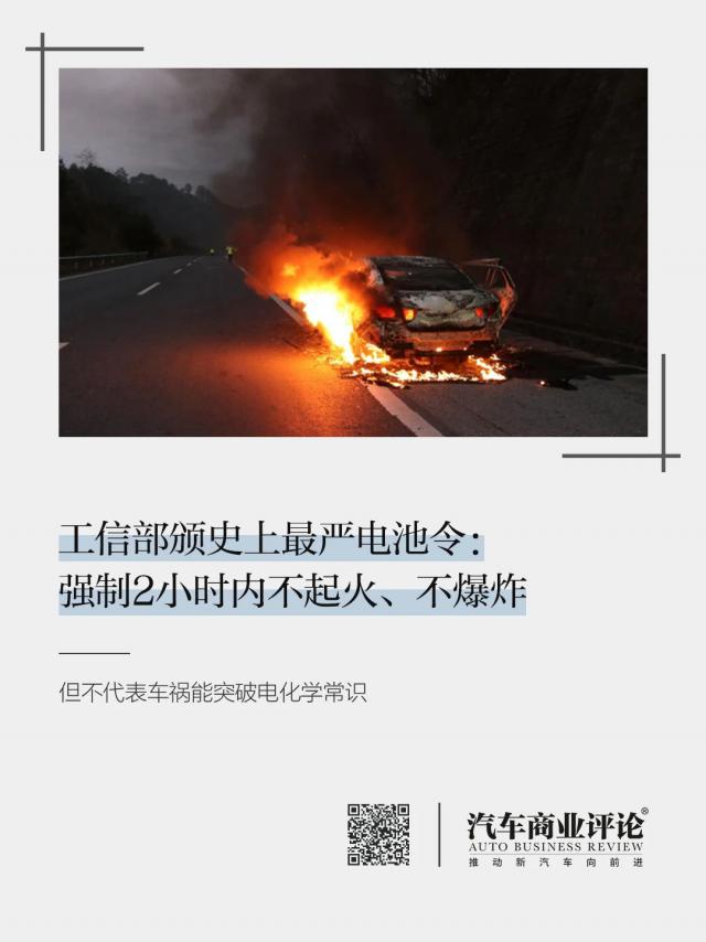 工业和信息化部颁布了历史上最严格的电池命令:强制2小时内不起火、不爆炸