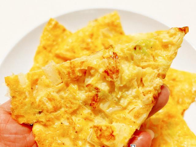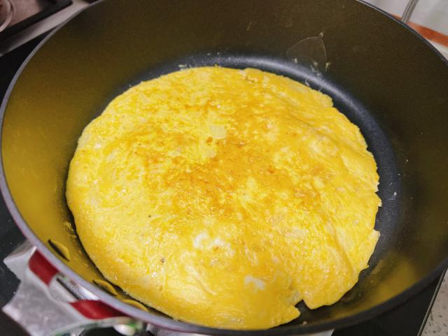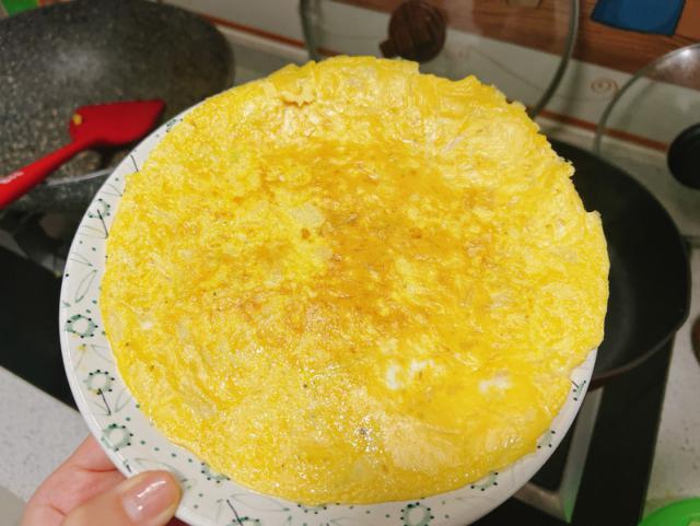 或者用盘子倒扣取出,完美的蛋饼就做好了。
