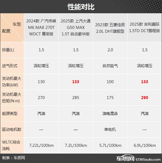 动力方面,除了五菱陈佳配备了油电混合动力系统外,其他三款车型都是纯燃油动力。从发动机参数来看,三款纯燃油车优势很大,但在混合动力系统的加持下,五菱陈佳的油耗最低,有电机协助导出,动力性能并不弱。