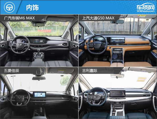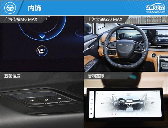内饰方面,广汽传祺 M6 MAX 和上汽大通 G50 MAX 所有的屏幕都配备了双屏幕。唯一不同的是前者是嵌入式的,更强调层次感,而后者的悬挂式设计则迎合了当下的时尚潮流。五菱陈佳和吉利嘉际的内饰布局差不多,但从细节对比来看,吉利嘉际显然更年轻、更时尚。