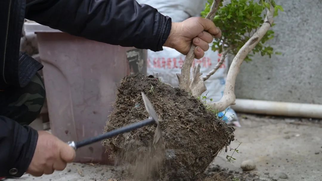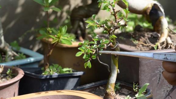 忙碌完这些,庄杰又开始为盆景翻盆,这也是春季盆景养护的重要组成部分,通常每三到五年换一次。