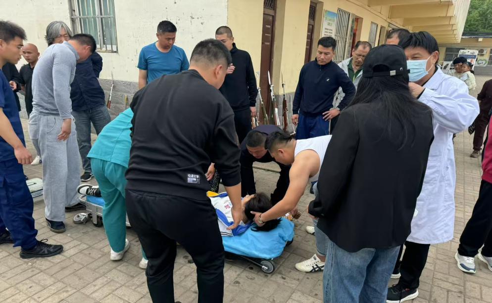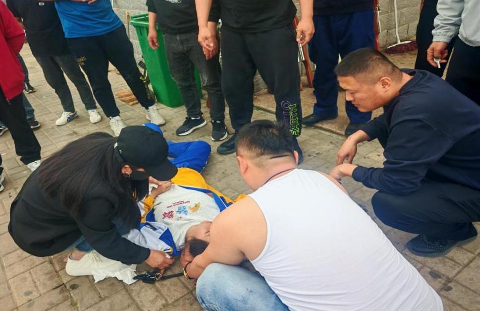 中原油田队立即停止训练进行救援。两名队员拨打了急救电话,试图联系老师和家长。其他队员手拉手形成一堵人墙,隔离围观群体。有资格获救的队员单膝跪地,脱下外套卷成卷,抵住女孩的牙齿,防止他们咬舌头,拍拍他们的肩膀。