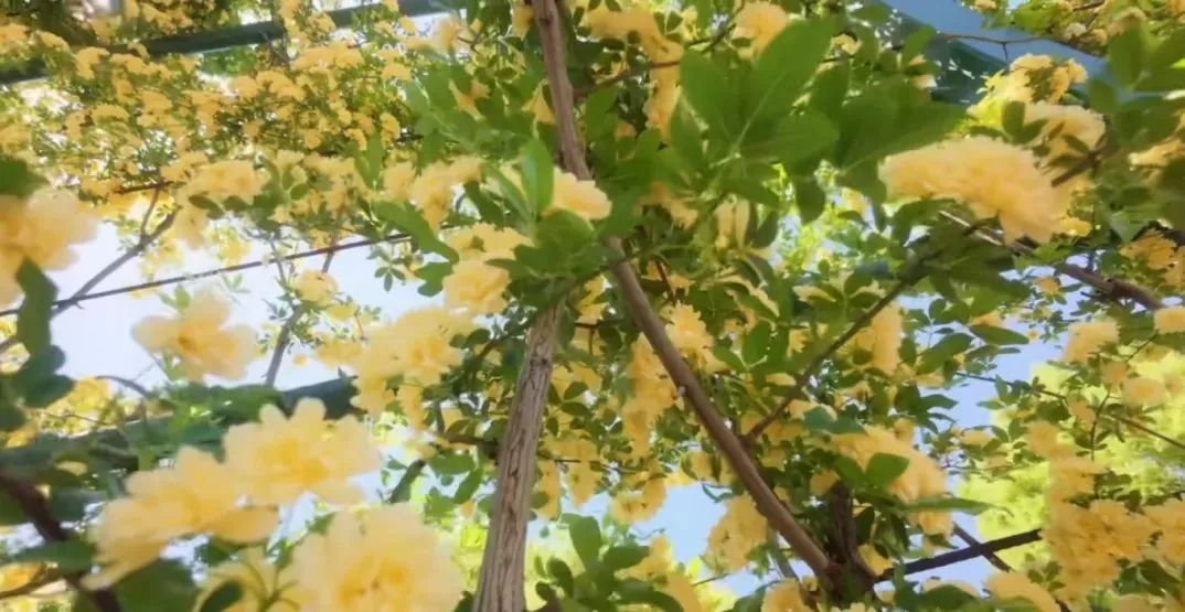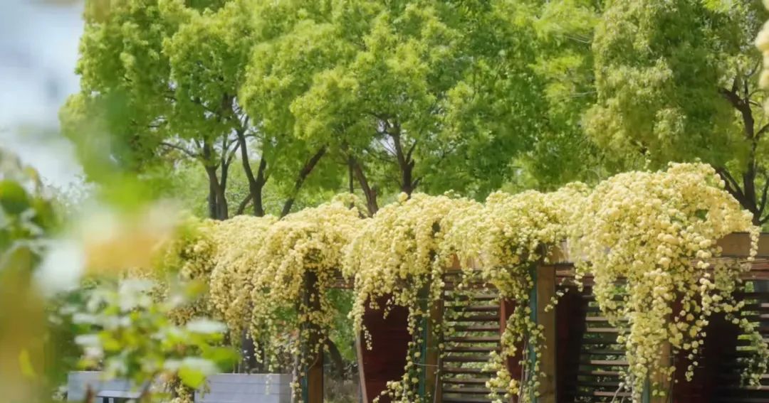 800米木香回廊已经悄然织成了一片“花海瀑布”