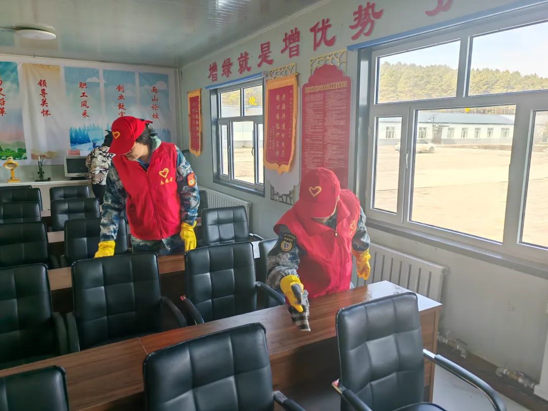 近日,新街基林场组织“初心”志愿服务队“捡烟头防火” 保护环境,美丽家园。志愿者穿着红色背心,戴着手套,拿着垃圾夹等工具,全方位清理场地路面、花坛、绿化带,重点捡烟头、碎纸等易燃隐患物。同时清理办公区、营房、活动室等场所,进行玻璃擦拭、设备清洁、路面清洁等工作。