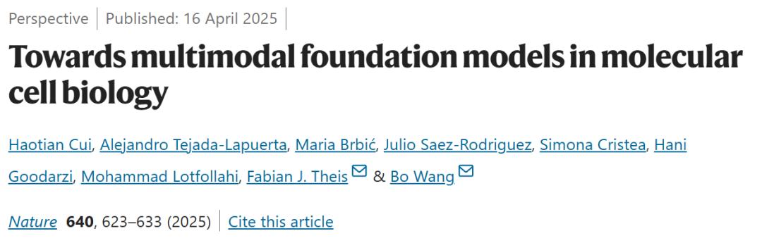 有关观点文章以“Towards multimodal foundation models in molecular cell biology“问题,已经在Nature上发表了国际权威科学期刊。