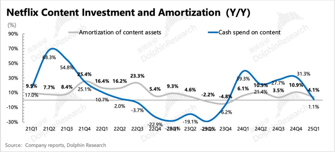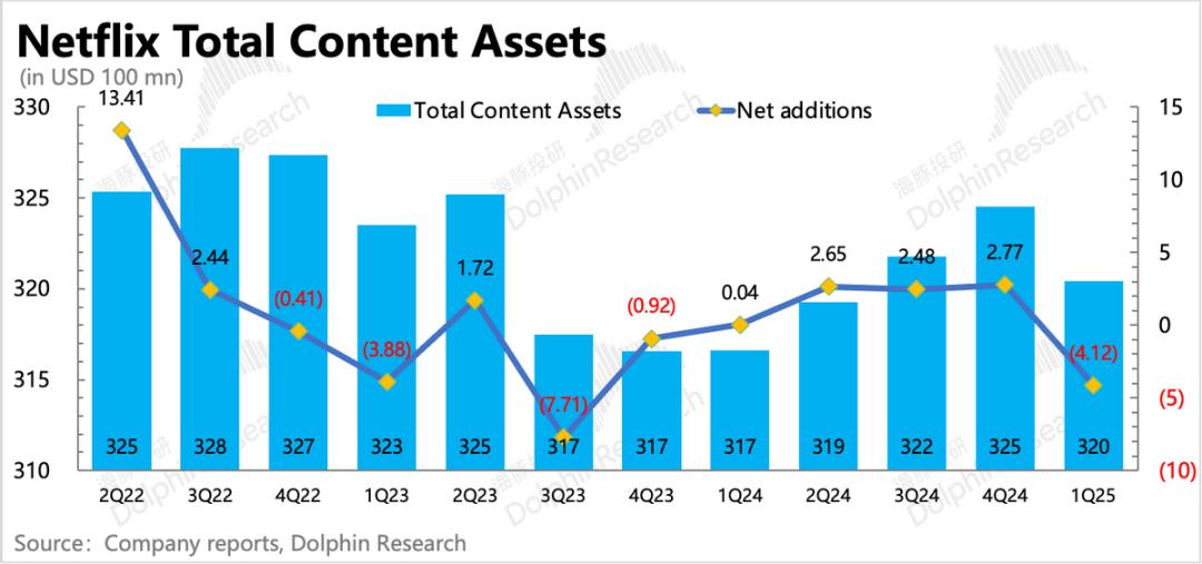 由期末内容资产规模的变化也可以看出,奈飞本期的投资力度不如摊销速度。