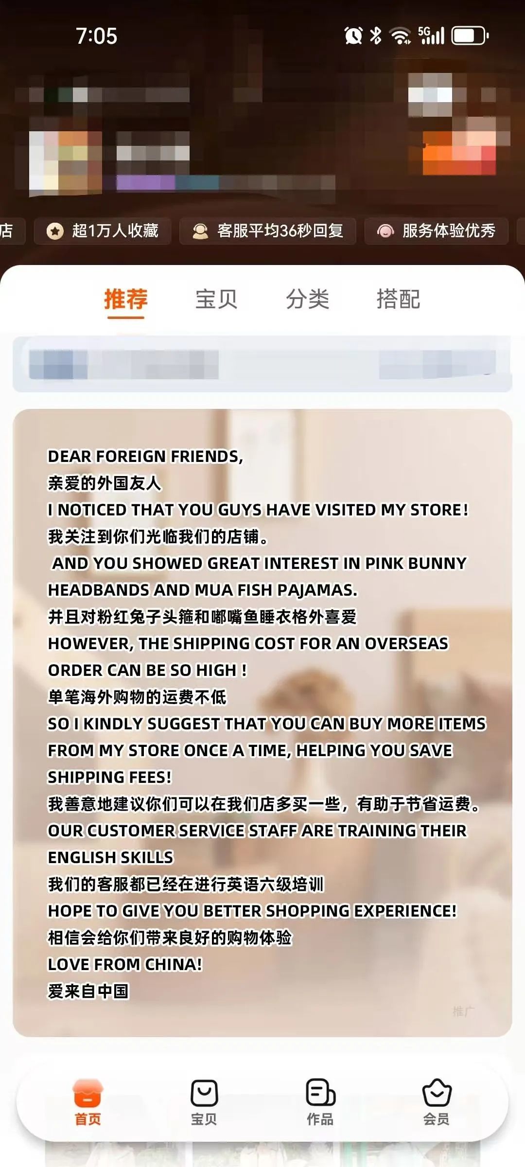 淘宝女装店“神狼大码”创始人陈巧智。他告诉记者,从4月12日开始,客服团队每天都会收到十几条“乍一看不是中国人”的旺旺咨询信息:“有的是翻译软件翻译的中文,有的只是英文。我去看了订单,发现这几天店里的海外流量也在飙升。”除紧急培训客户服务英语外,一些商店甚至直接挂出中英文公告:“欢迎来到世界各地的商店”。