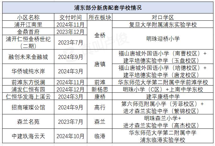 另外,对于新房来说,随着浦东近两年多个新盘陆续交付,不少学校也有配套设施。