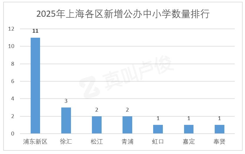 我们注意到,今年全市共增加了21所公立中小学,浦东新区(包括临港)遥遥领先,直接占据11所。
