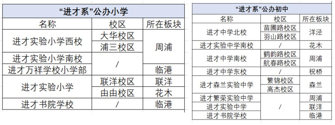 浦东第二大教育集团“进才系”紧随“建平系”之后。小学和初中总数最近达到13所,包括5所小学和8所初中。