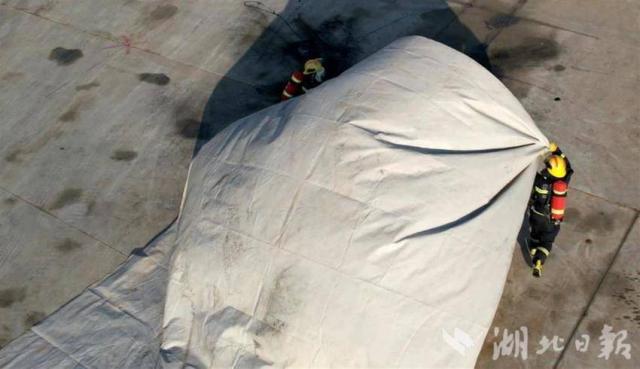 火势下降时,可以先盖上防火毯,防止其他车辆燃烧,然后可以先将燃烧后的有毒黑烟包裹在里面,避免以前地下室自燃导致住宅楼集体中毒的问题。
