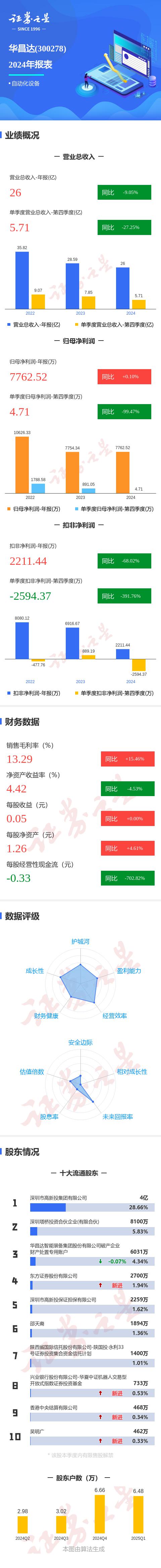 插图华昌达年报:第四季度净利润同比下降99.47%